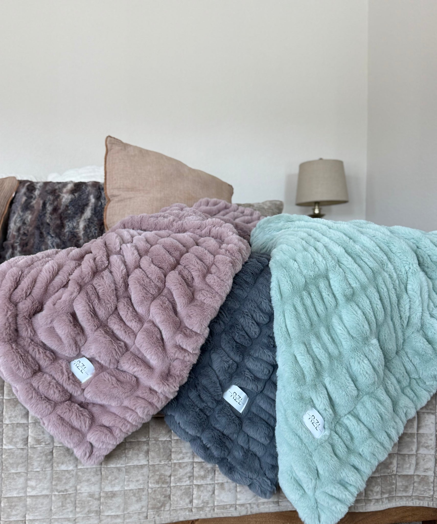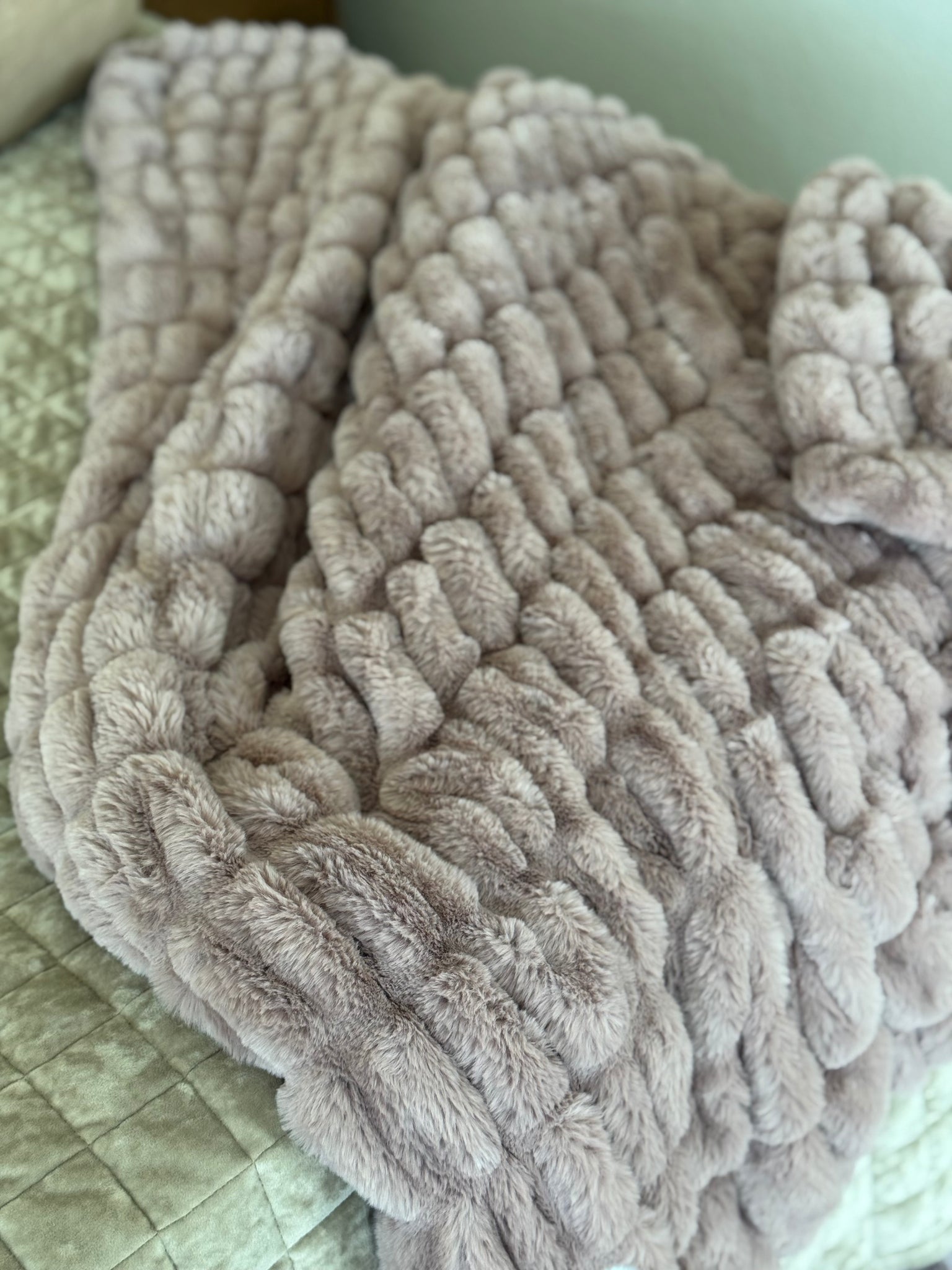 In addition to a luxuriously-high pile, it's knitted with elastic so it's extra stretchy and cascades into a rippling effect.